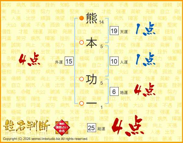 熊本功一さんの天運は19画の1点!