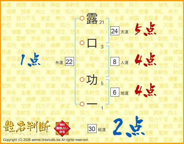 露口功一さんの天運は24画の5点!