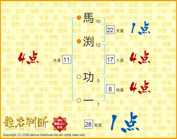 馬渕功一さんの人運は17画の4点!