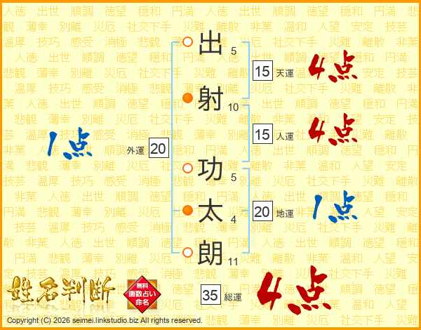 出射功太朗さんの総運は35画の4点!