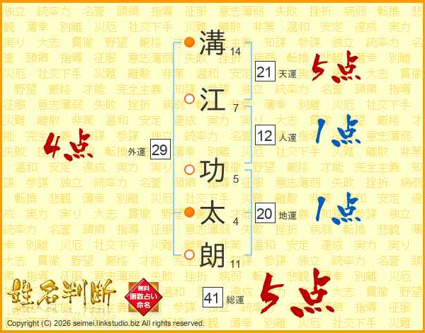 溝江功太朗さんの天運は21画の5点!
