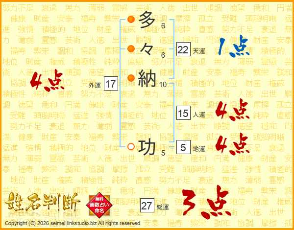 多々納功さんの天運は22画の1点!