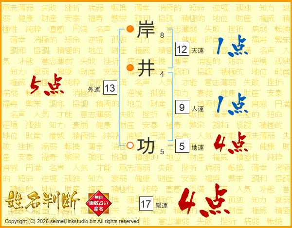 岸井功さんの総運は17画の4点!