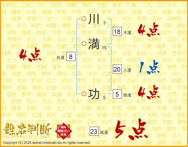 川(3画)満(15画) 功(5画)