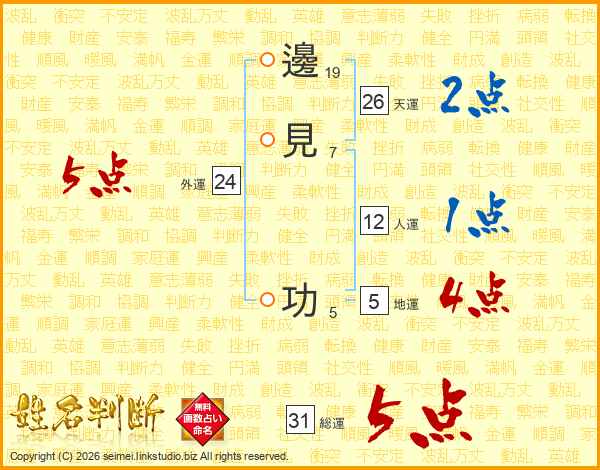 邊見功さんの天運は26画の2点!