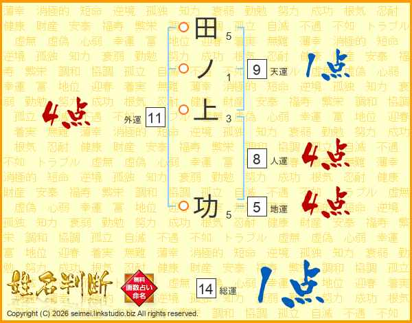 田ノ上功さんの総運は14画の1点!