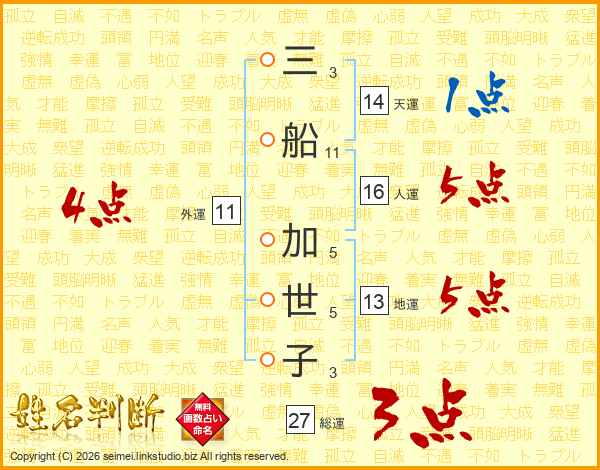 三船加世子さんの総運は27画の3点!