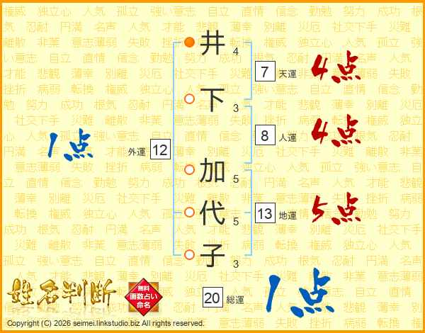 井(4画)下(3画) 加(5画)代(5画)子(3画)