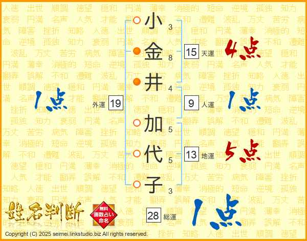小金井加代子さんの総運は28画の1点!