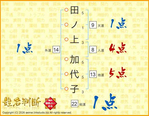 田ノ上加代子さんの総運は22画の1点!