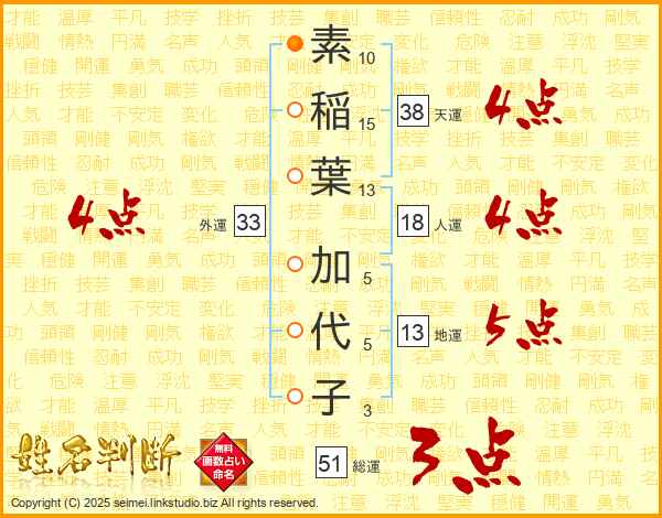 素稲葉加代子さんの総運は51画の3点!