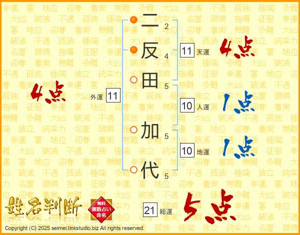 二反田加代さんの天運は11画の4点!