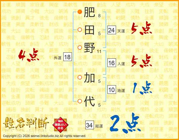 肥田野加代さんの外運は18画の4点!