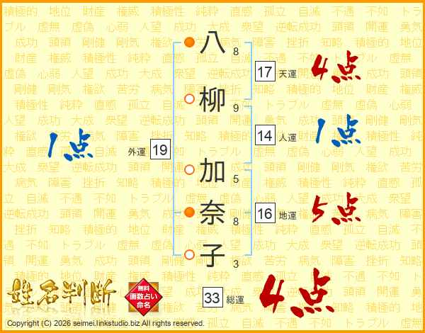 八柳加奈子さんの総運は33画の4点!