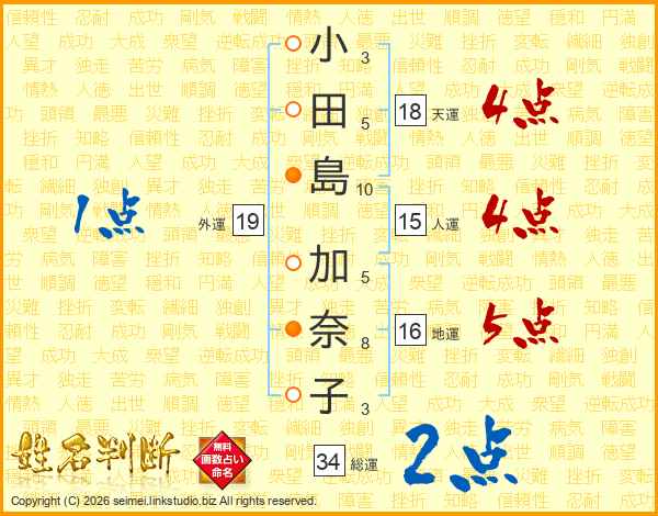 小田島加奈子さんの総運は34画の2点!