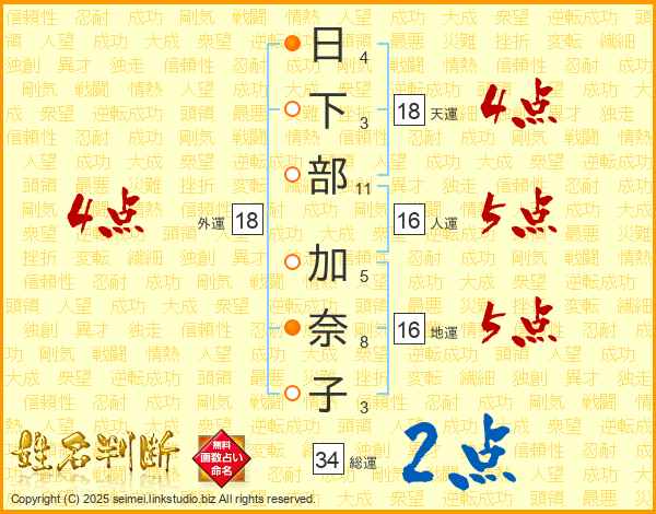 日(4画)下(3画)部(11画) 加(5画)奈(8画)子(3画)