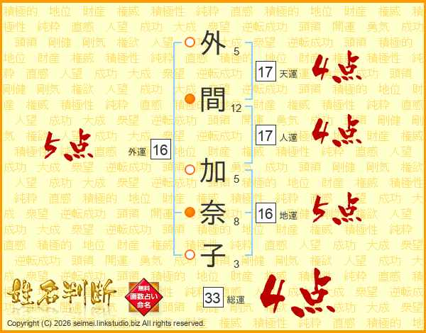外間加奈子さんの総運は33画の4点!