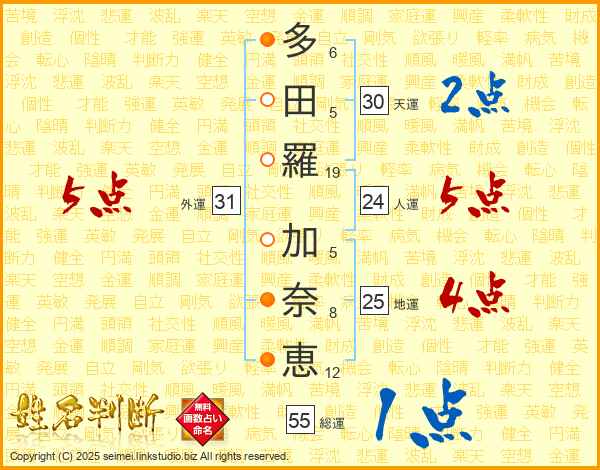多田羅加奈恵さんの外運は31画の5点!