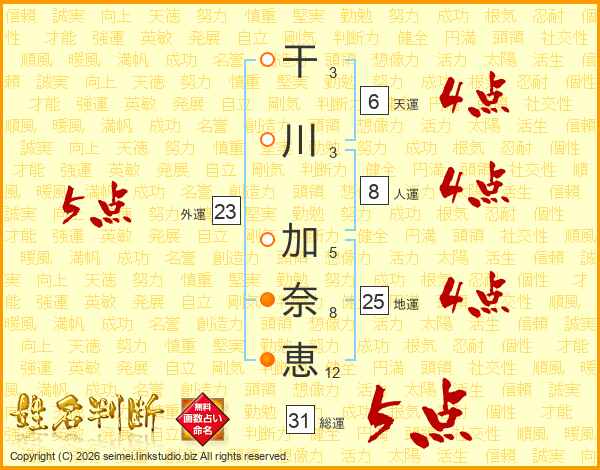 干川加奈恵さんの総運は31画の5点!