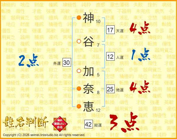 神谷加奈恵さんの総運は42画の3点!