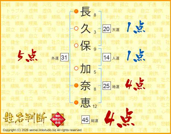 長久保加奈恵さんの総運は45画の4点!