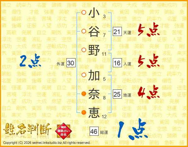 小谷野加奈恵さんの総運は46画の1点!