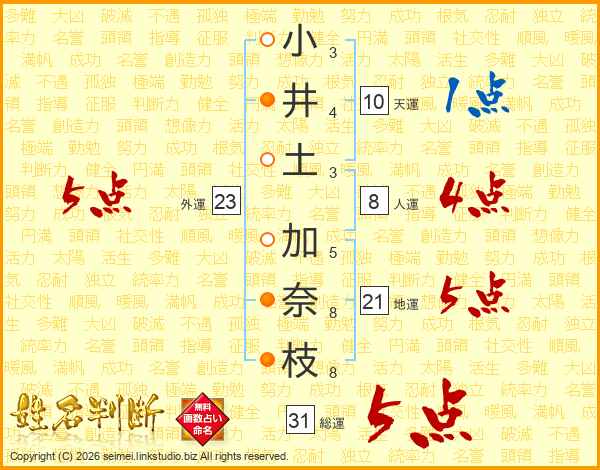 小井土加奈枝さんの総運は31画の5点!