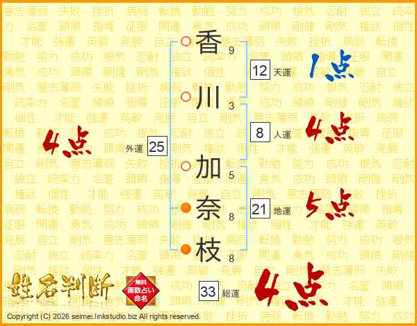 香川加奈枝さんの総運は33画の4点!