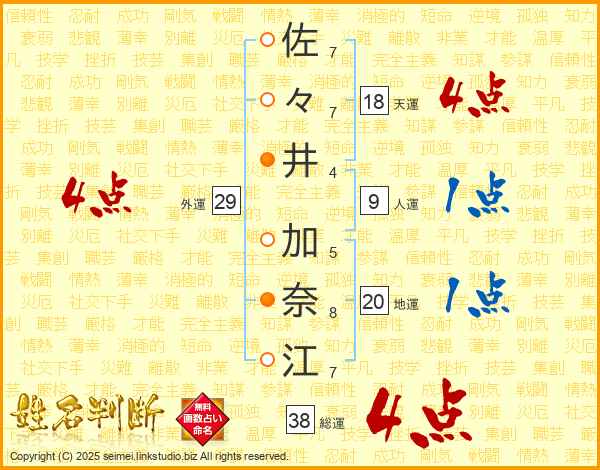 佐々井加奈江さんの総運は38画の4点!