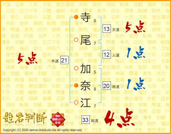 寺尾加奈江さんの総運は33画の4点!