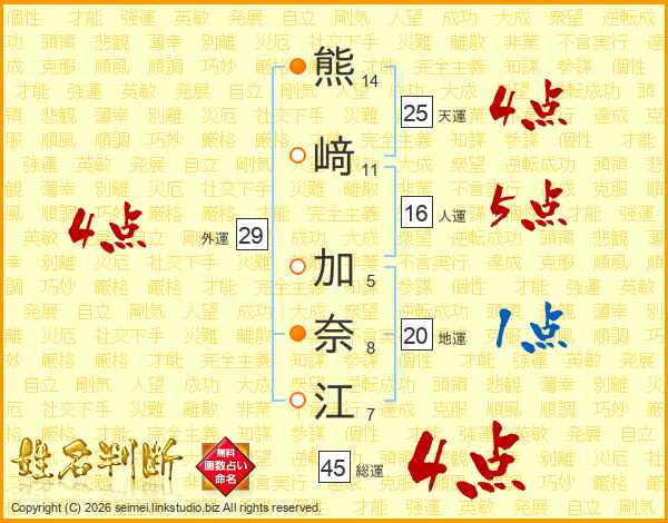 熊﨑加奈江さんの天運は25画の4点!
