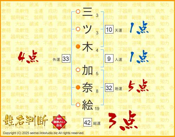 三ツ木加奈絵さんの外運は33画の4点!