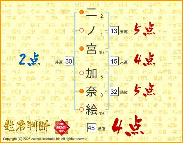二ノ宮加奈絵さんの総運は45画の4点!