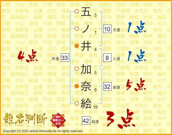 五ノ井加奈絵さんの外運は33画の4点!