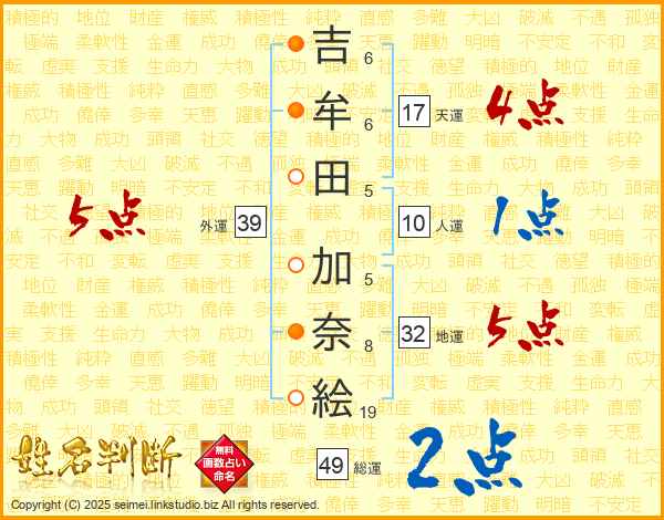 吉牟田加奈絵さんの天運は17画の4点!