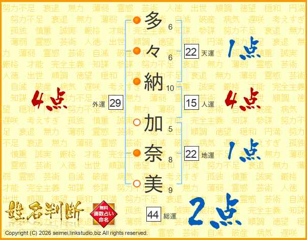 多々納加奈美さんの総運は44画の2点!