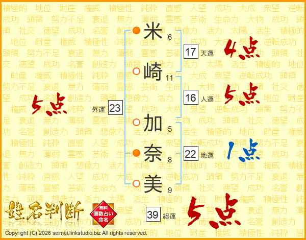 米崎加奈美さんの総運は39画の5点!