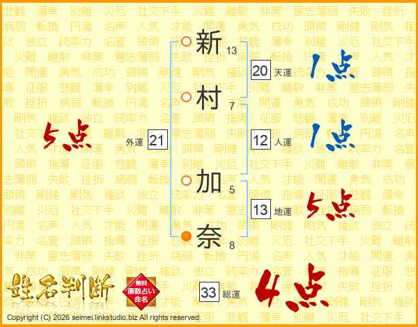 新村加奈さんの総運は33画の4点!