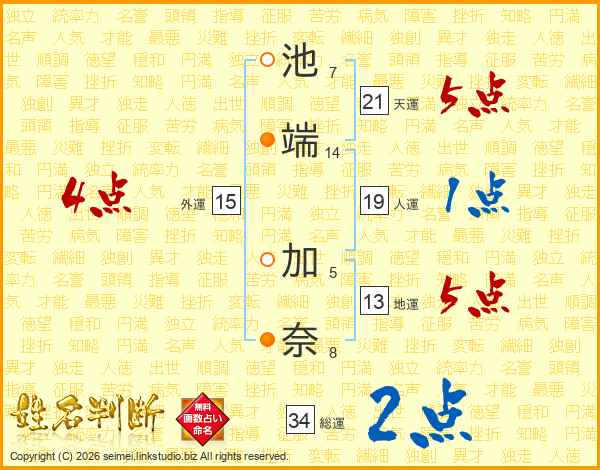 池端加奈さんの天運は21画の5点!