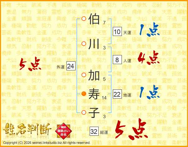 伯川加寿子さんの総運は32画の5点!