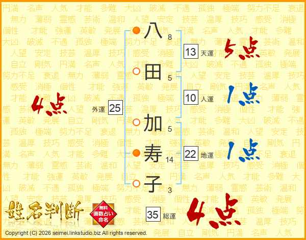 八田加寿子さんの総運は35画の4点!