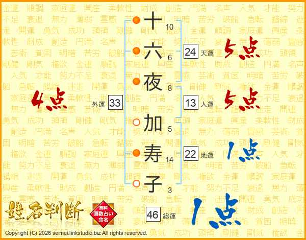 十六夜加寿子さんの総運は46画の1点!