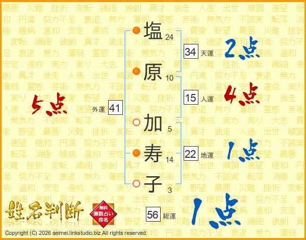 塩原加寿子さんの外運は41画の5点!