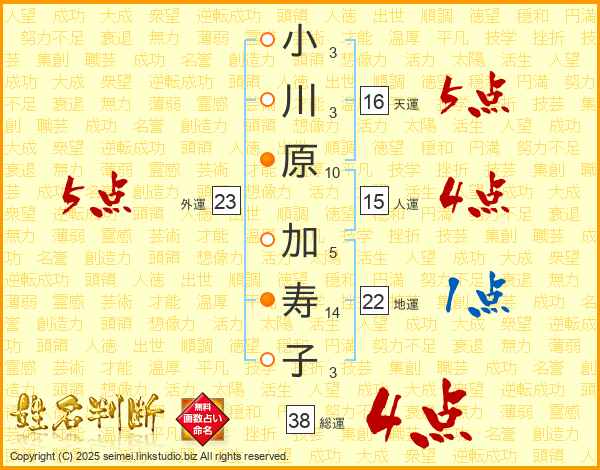 小川原加寿子さんの総運は38画の4点!