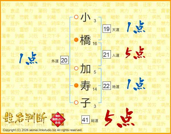 小橋加寿子さんの総運は41画の5点!