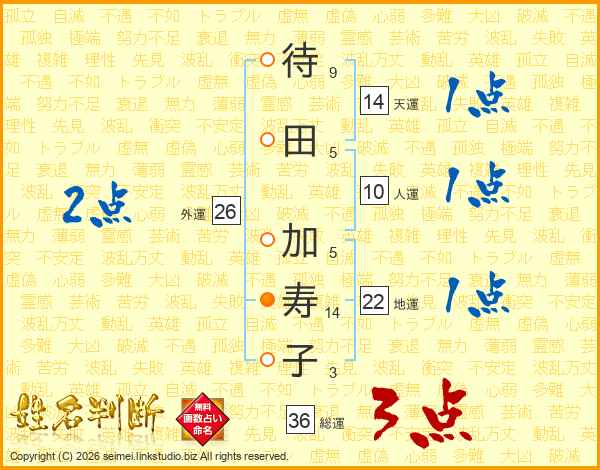 待田加寿子さんの天運は14画の1点!