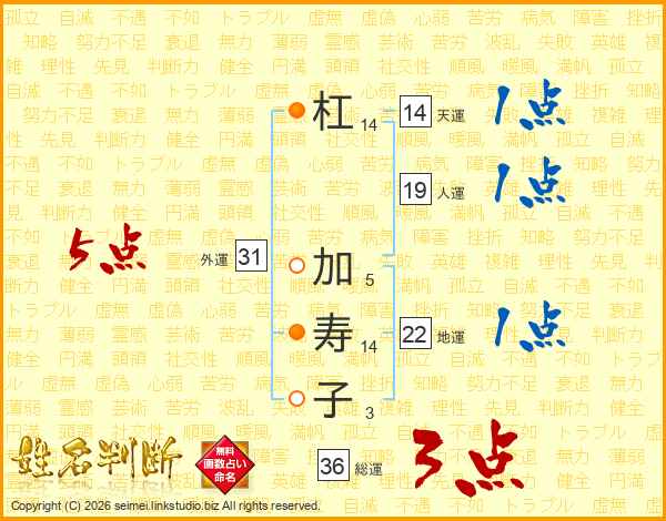 杠加寿子さんの外運は31画の5点!