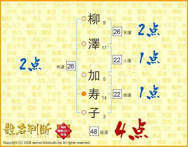 柳澤加寿子さんの総運は48画の4点!