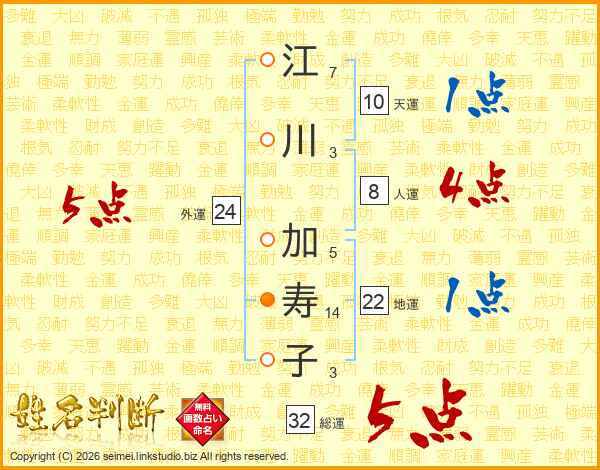 江川加寿子さんの総運は32画の5点!
