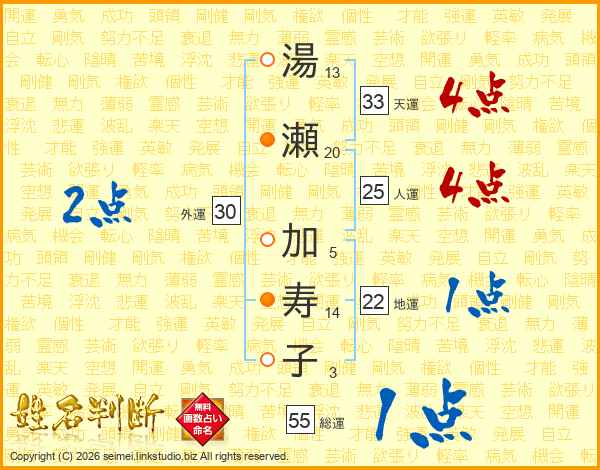 湯瀬加寿子さんの天運は33画の4点!